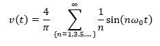 To convert the input signal to a sine wave, a Fourier series expansion of the input square signal was used: