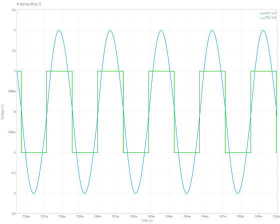 Upon receiving and populating the PCB, the circuit was tested with the input 2 Vpp 350 Hz square wave, expecting a 4 Vpp 350 Hz sine wave in phase with the square wave at Vout.