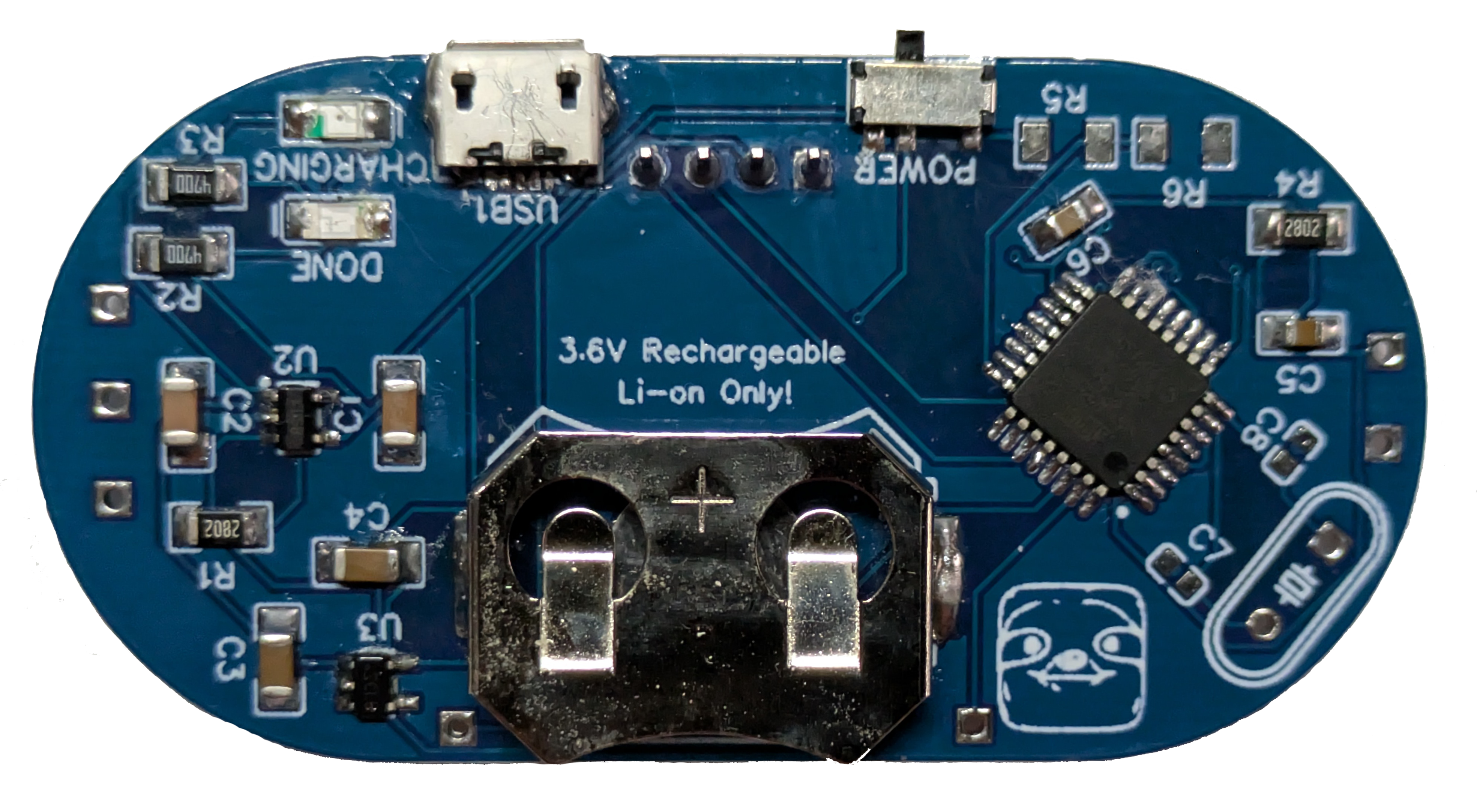 The design of this project is relatively straight forward centering around the popular ATMEGA 328p microcontroller (same as the Arduino UNO). Included in the design is also the hardware to use and charge a single cell lithium-ion coin cell. This hardware includes the battery charging circuit, linear regulator, power switch, and a USB-micro connector. The console's display is a small I2C OLED breakout board that is soldered to the main PCB and four user buttons are included on the front to play the games.